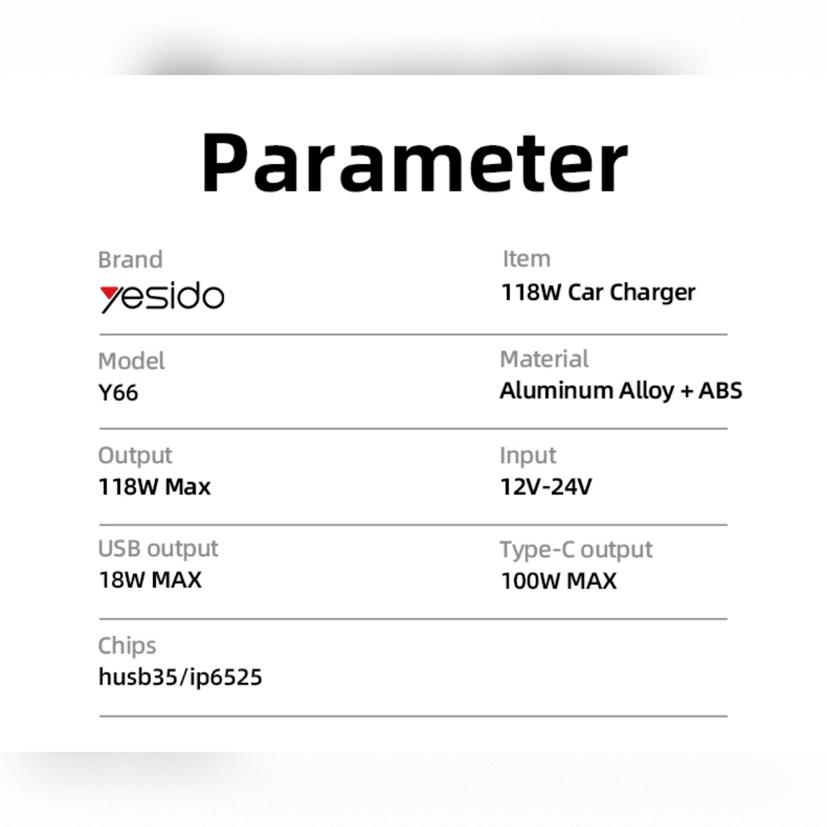 CARGADOR DE AUTO YESIDO 118W – 2 PUERTOS USB / TIPO-C PD Y CARGA RÁPIDA