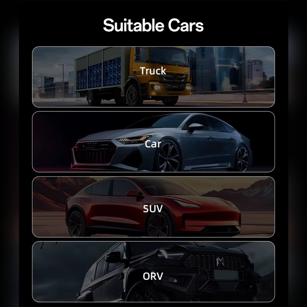 Entrada 12V–24V – Compatible con autos, camionetas y vehículos ligeros.
